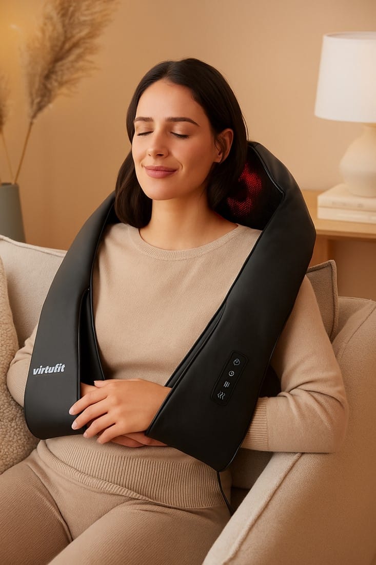 A Virtufit Shiatsu nyakmasszírozó egy kiváló társ a kényeztetéshez, vezeték nélküli, így akár utazáshoz is használható
